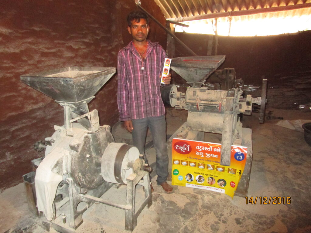 The program operated in 15 villages in Songadh block, Tapi district, Gujarat, reaching approximately 5,600 households with micronutrient sachets containing iron, folic acid, vitamin B12, and vitamin A. Each 1.25g sachet was designed for 5 kg of wheat, rice, or jowar flour.